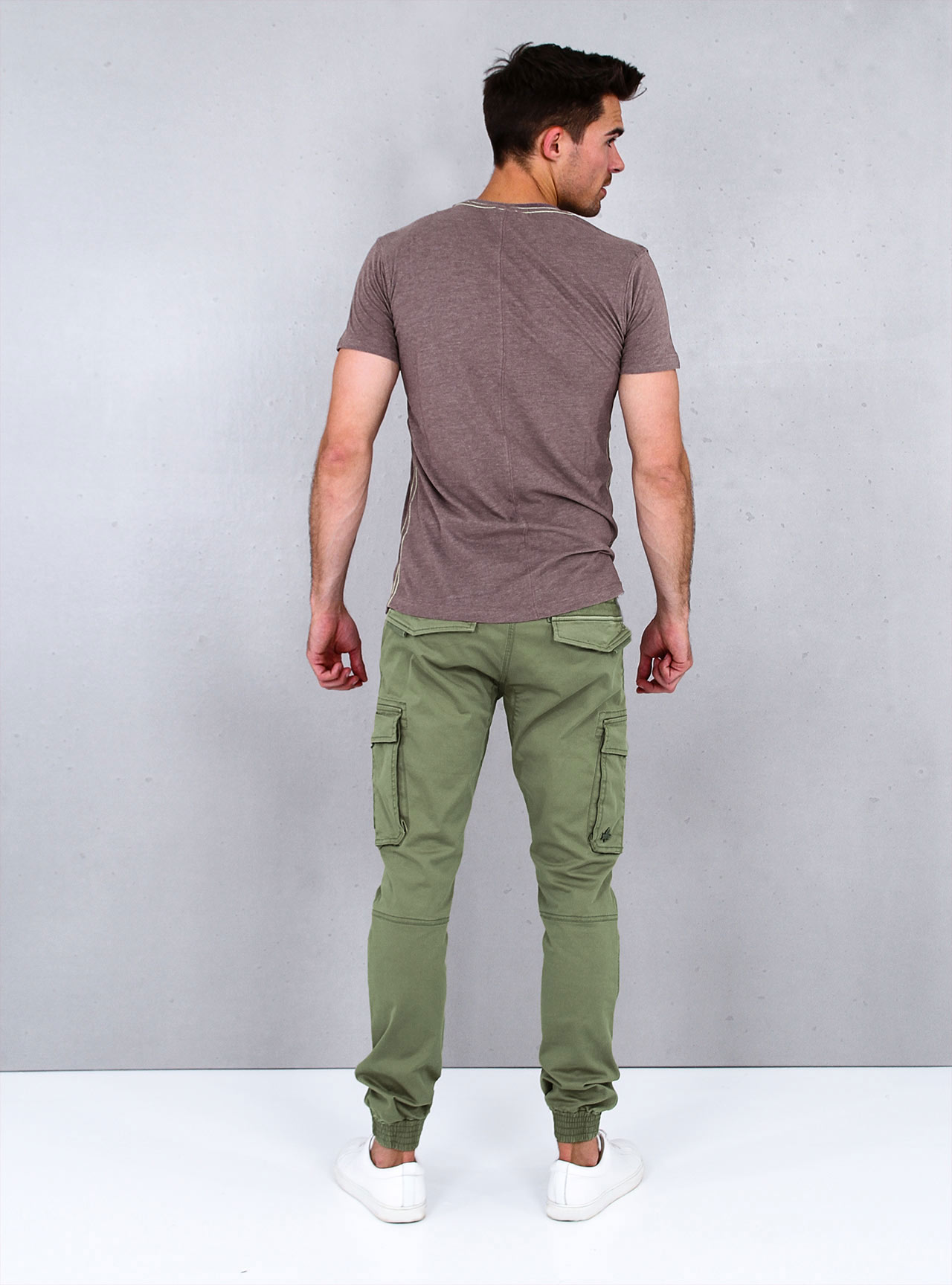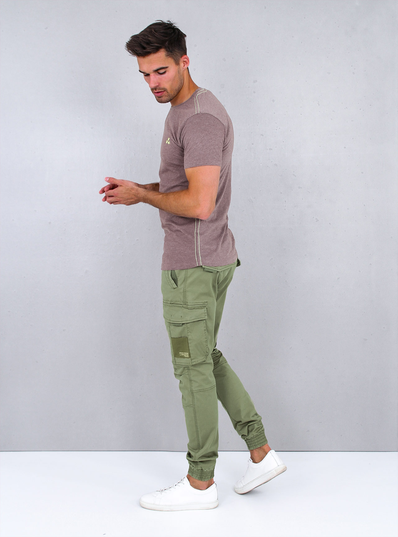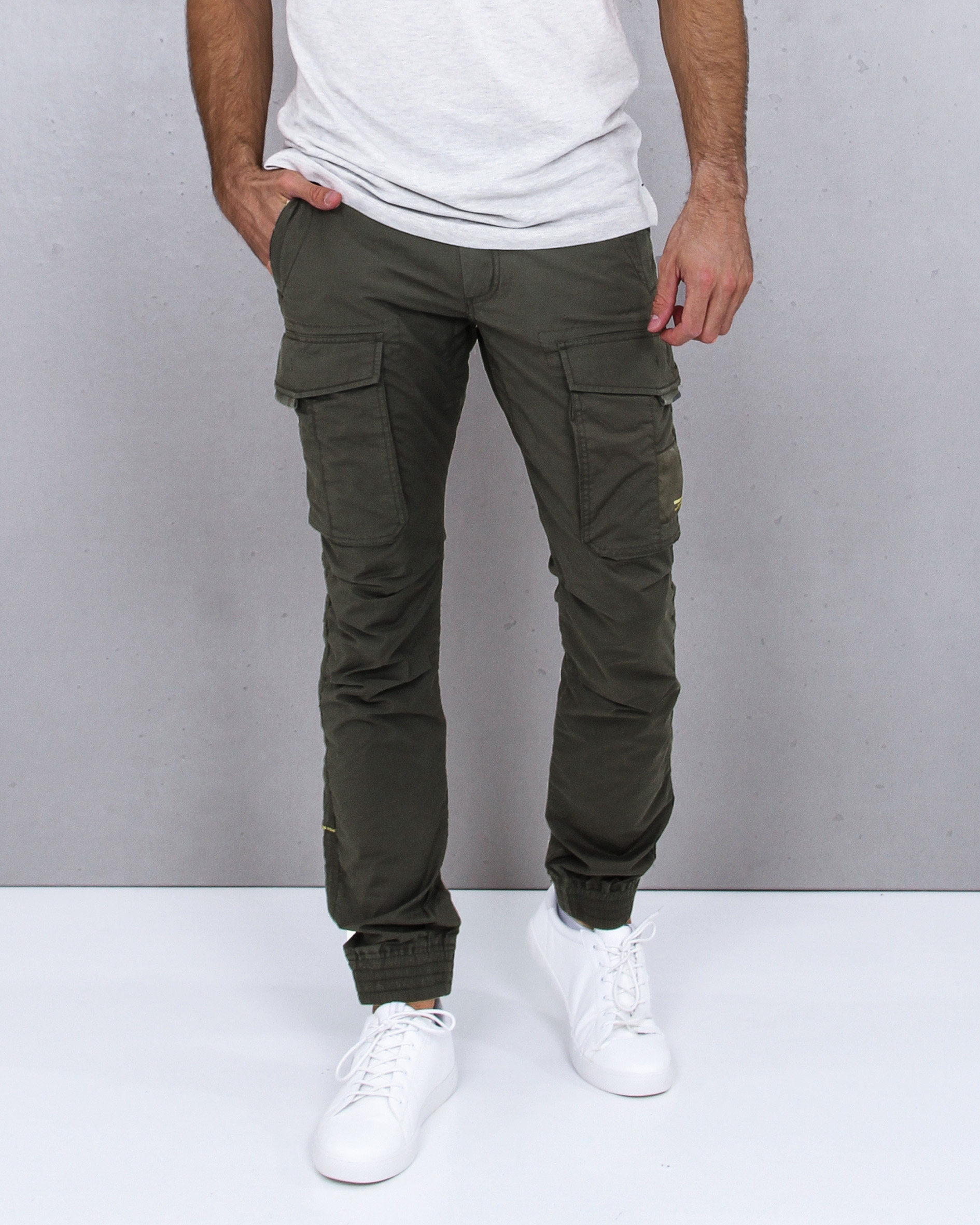 Moderní pánské cargo kalhoty z měkkého a pohodlného materiálu, rovného střihu. Kalhoty mají klasické dvě boční kapsy, dvě cargo kapsy a dvě zadní kapsy. Nohavice zakončeny manžetami.