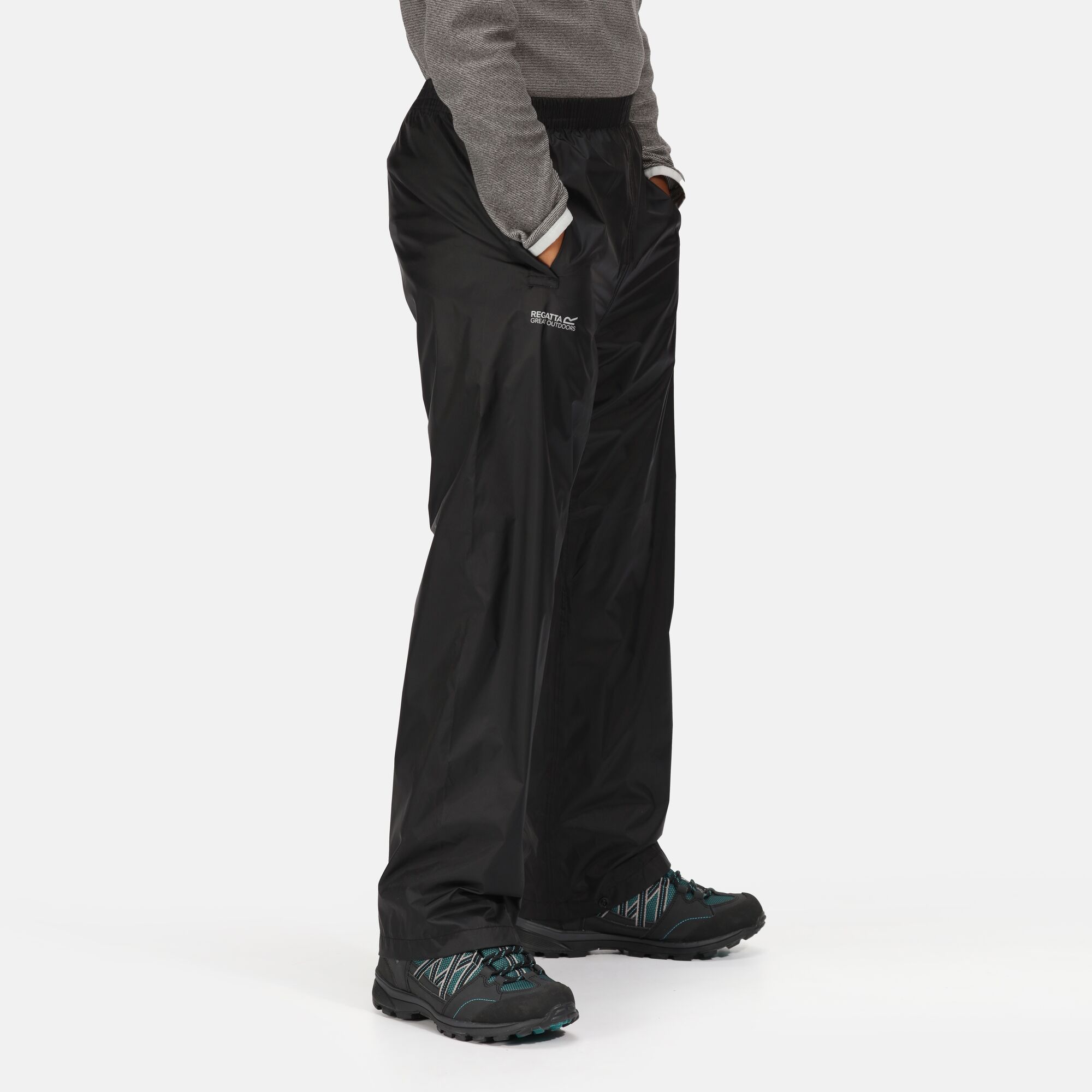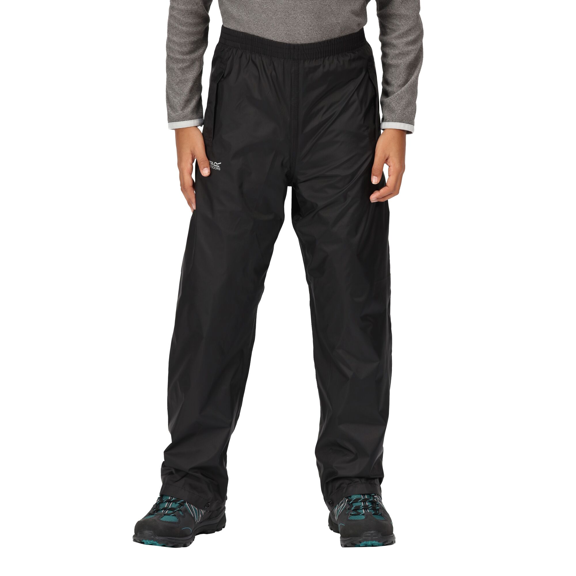Vodoodpudivé, prodyšné a lehké dětské svrchní kalhoty. Vždy připravené na cestu za dobrodružstvím, čekají sbalené v malém praktickém cestovním vaku. Střih je dostatečně volný, tak aby se kalhoty v případě nepříznivého počasí daly snadno obléci a to kdykoliv a kdekoliv. Nohavice zakončeny patentkami pro případné doladění šířky u různých druhů obuvi. Švy jsou podlepené a v bocích prošité vstupy do hlavních kalhot.