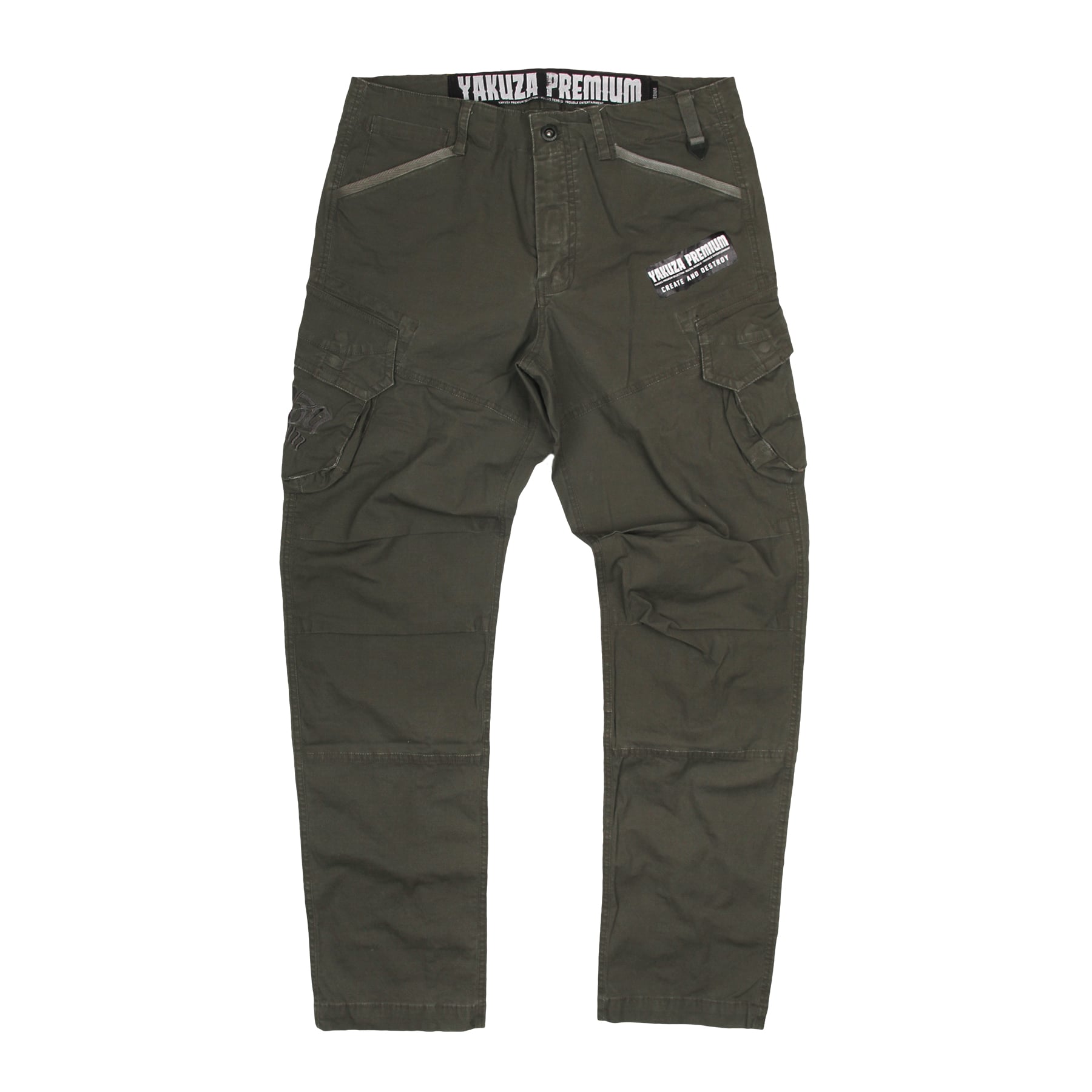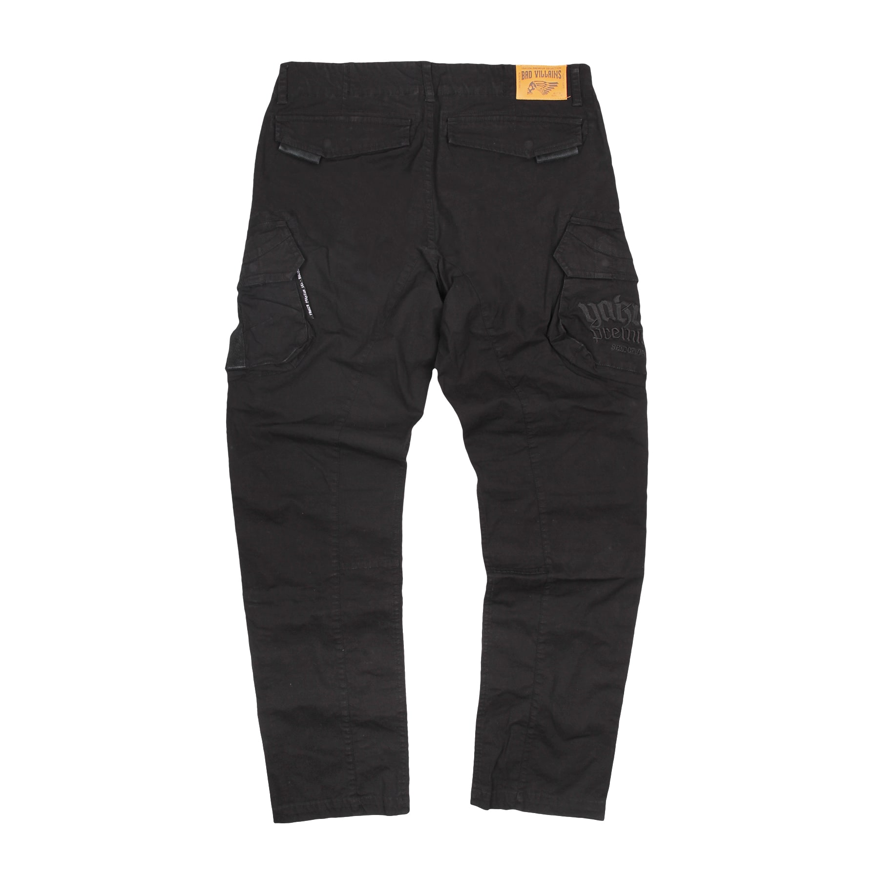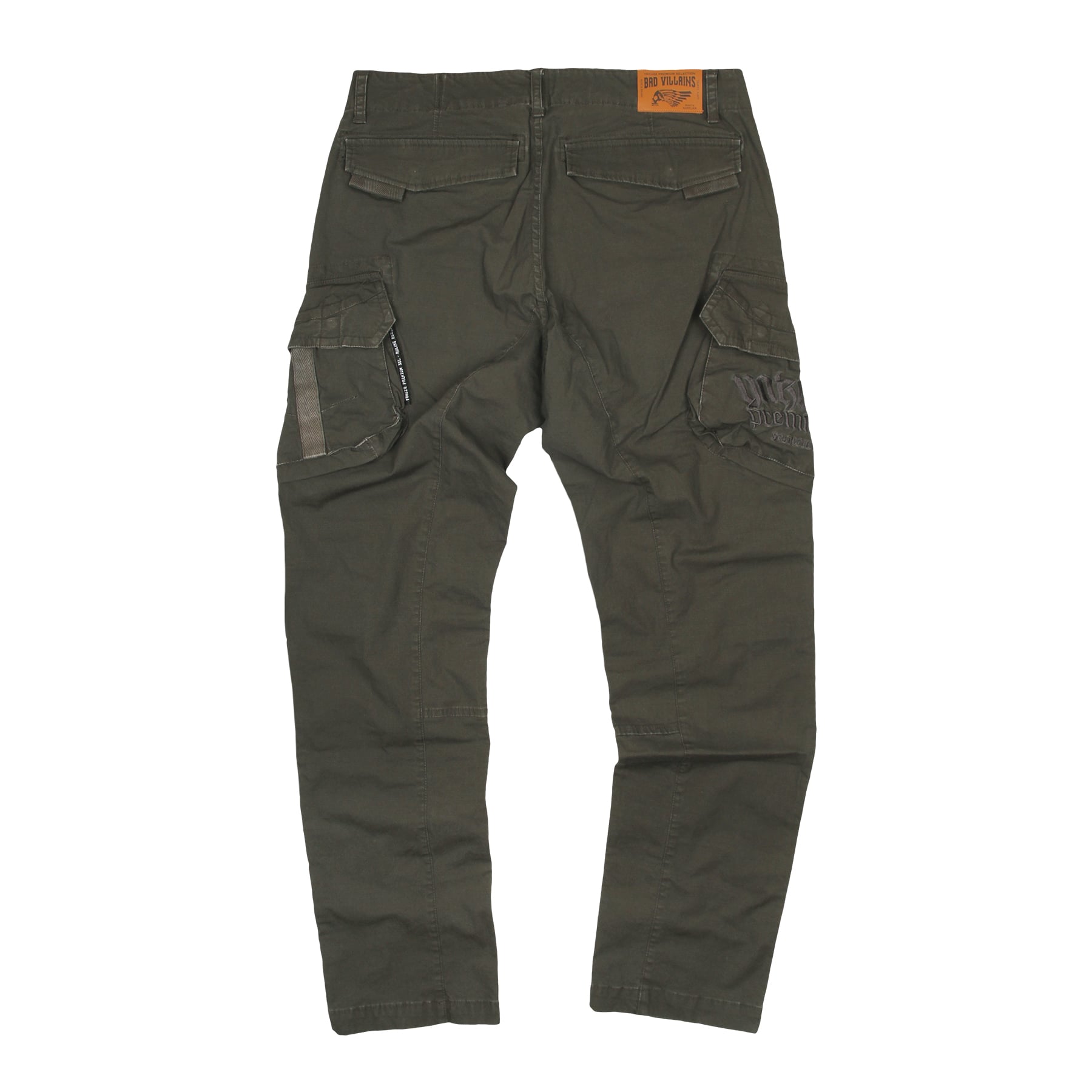 Pružné cargo kalhoty z lehké ripstopové tkaniny. Zapínání na zip a knoflík. Dvě kapsy na bocích a dvě velké stehenní s klopami a zapínáním na druky. Pravá stehenní kapsa je zdobena výšivkou v barvě kalhot. Další kapsy na zadní straně. Kolena jsou skládaná, aby nebránila pohybu. Zaujmou vás spoustou originálních detailů.