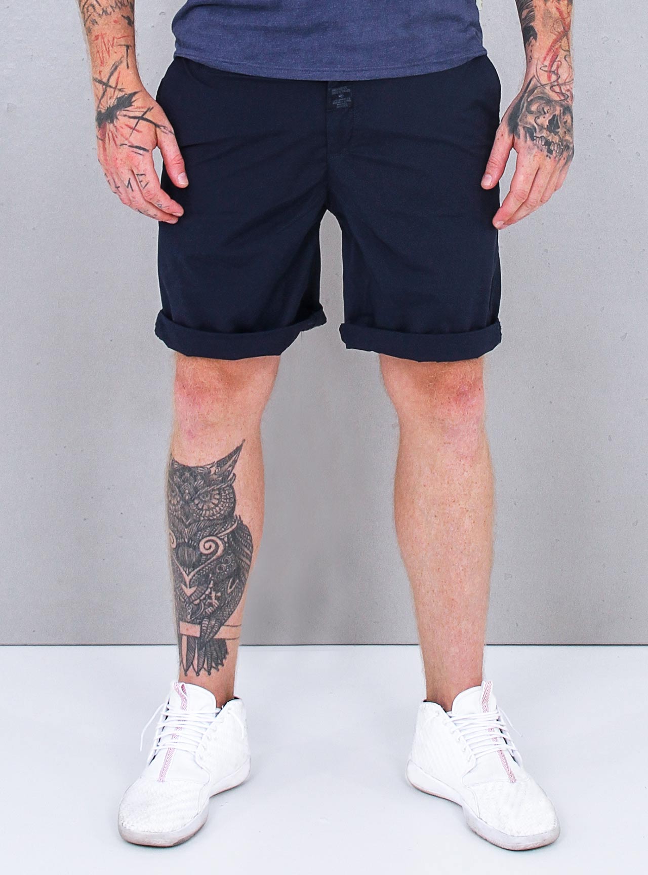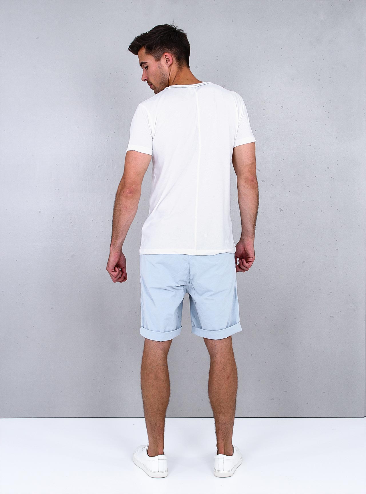 Sportovní a elegantní chino kraťasy, které vypadají ležérně a šik zároveň v teplých časech. Boční kapsy a zadní otevřené kapsy dodávají těmto módním a nadčasovým šortkám dokonalý vzhled.