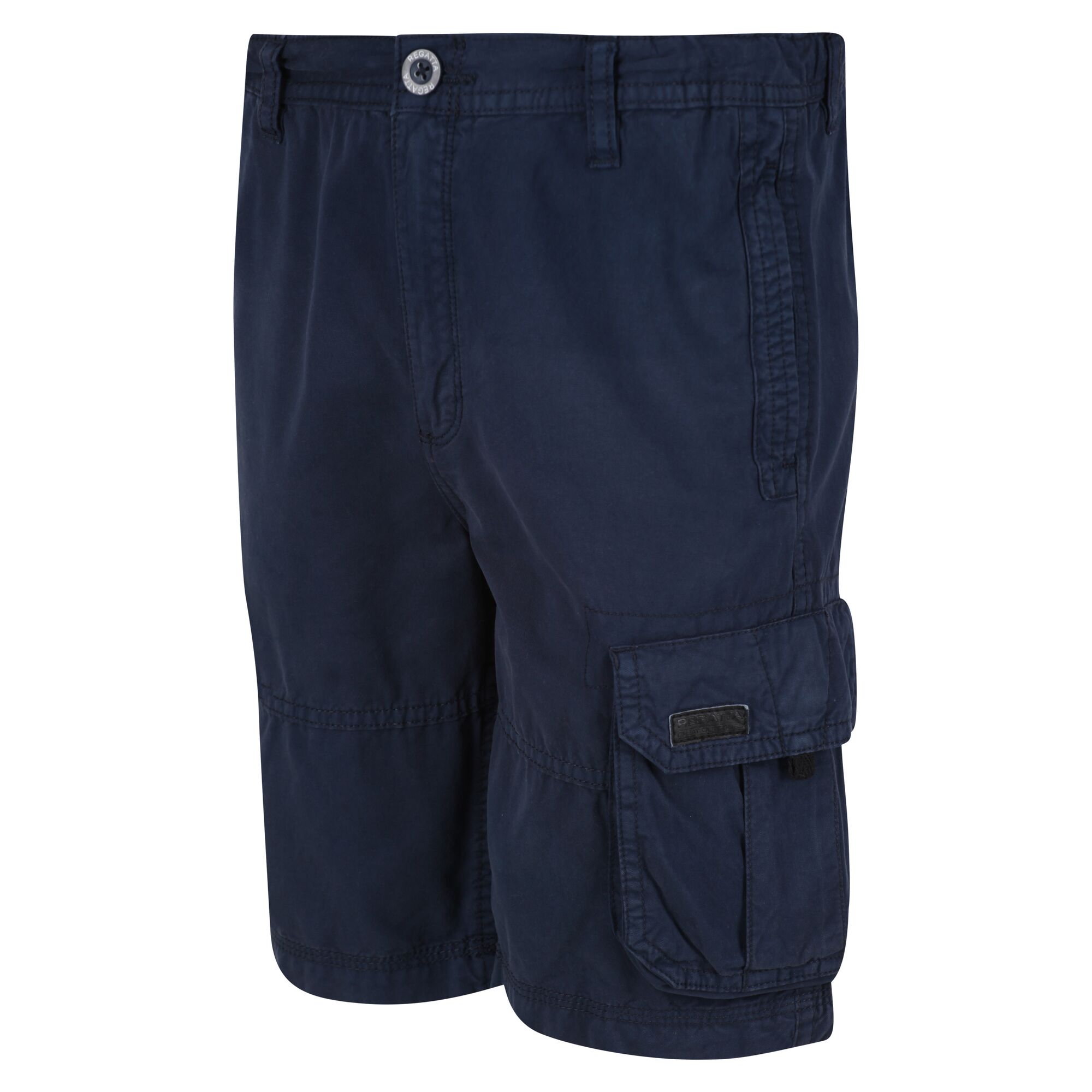 Lehké kapsáčové kraťasy z chladivého a prodyšného materiálu, v sepraném vzhledu. Střih je klasický, rovný, se zapínáním na zip a knoflík. Jsou ušité z předeprané tkaniny, která je na dotek měkká, příjemná a savá. Dvě kapsy na bocích, jedna cargo kapsa s klopou na stehně a jedna kapsa na zadním díle, také jištěná klopou. V pase poutka na protažení pásku.