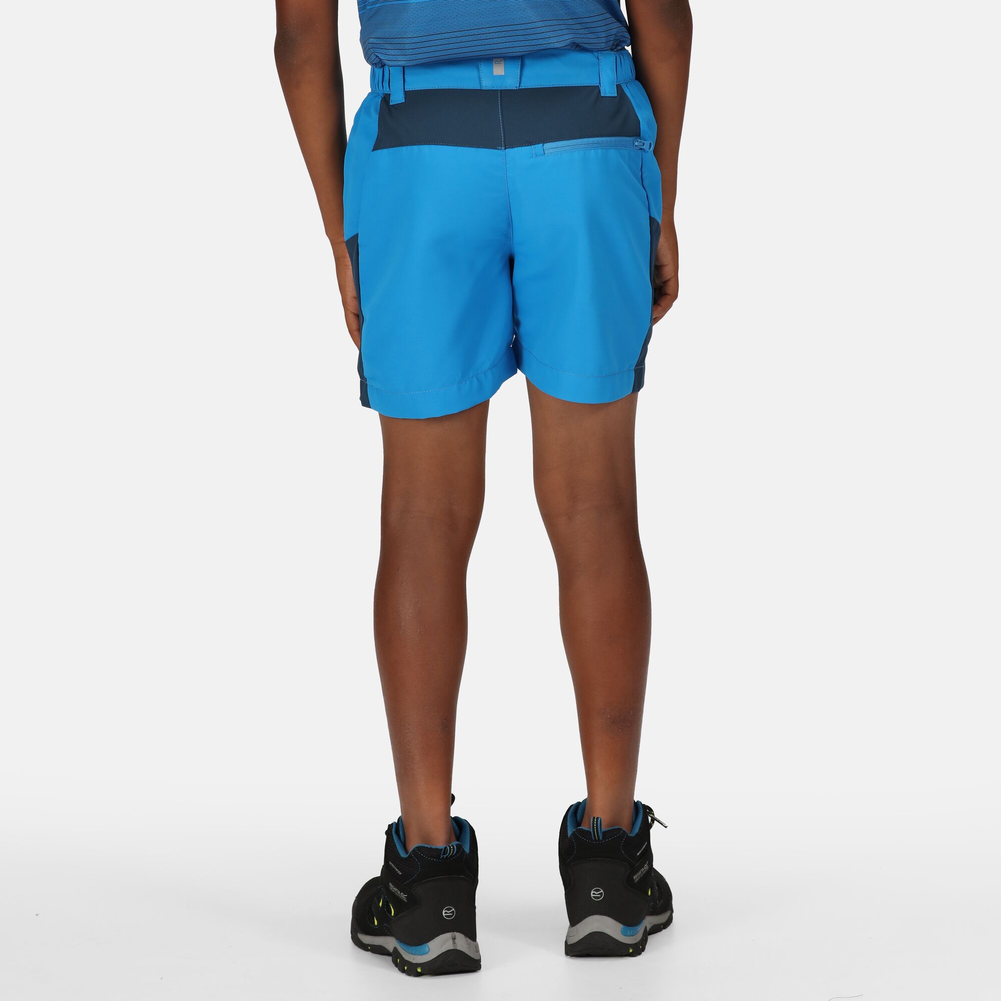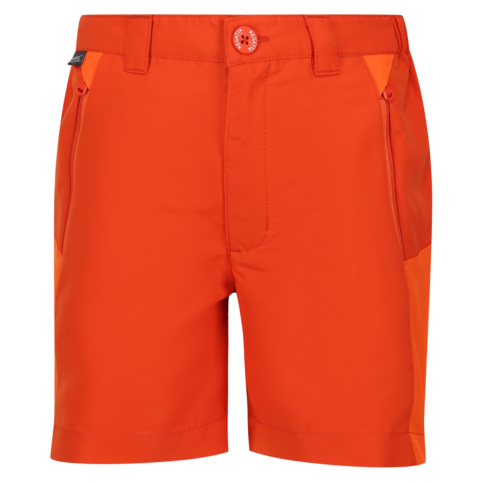 Dětské šortky, pružné a lehké s vodoodpudivou úpravou. Odolná tkanina se strečovými panely pro snadnější pohyb. Promyšleně řešené boční kapsy jsou všité v oblasti třísel, šikmo, tak aby do nich byl co nejjednodušší přístup a zapínatelné skrytými zipy. Na pravé straně zadního dílu je další kapsa na zip. Pas je částečně pružný a zapíná se na zip a knoflík, v pase jsou poutka na protažení pásku.