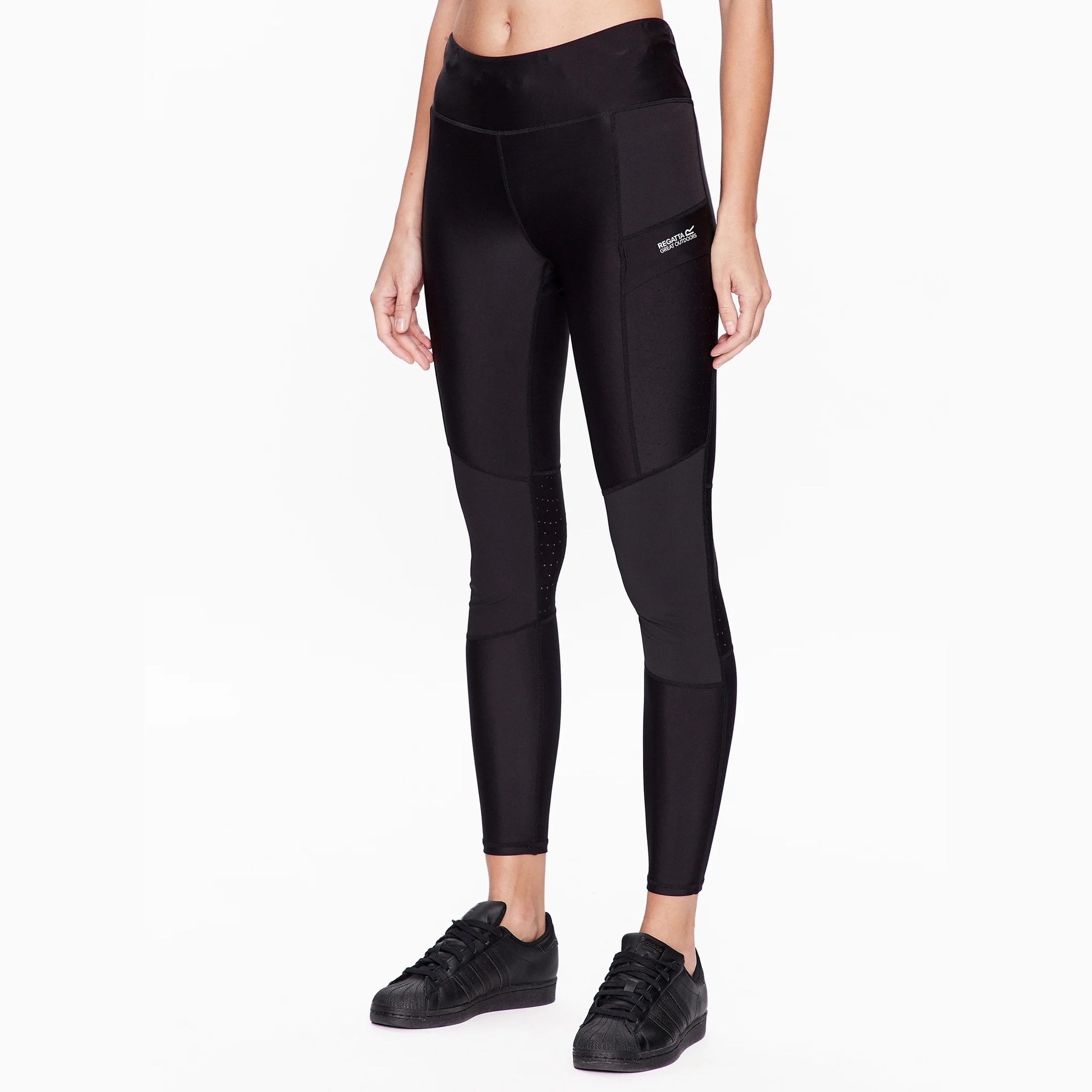 Legíny na běh a fitness s vysokým pasem, vodoodpudivou úpravou a UV ochranou.