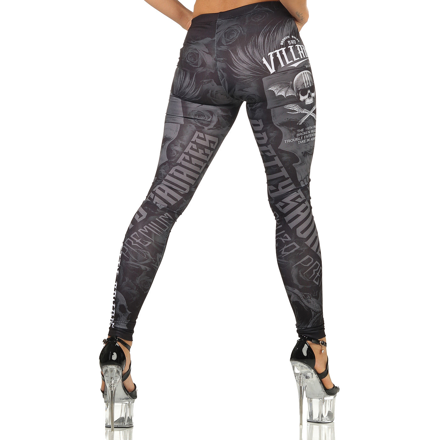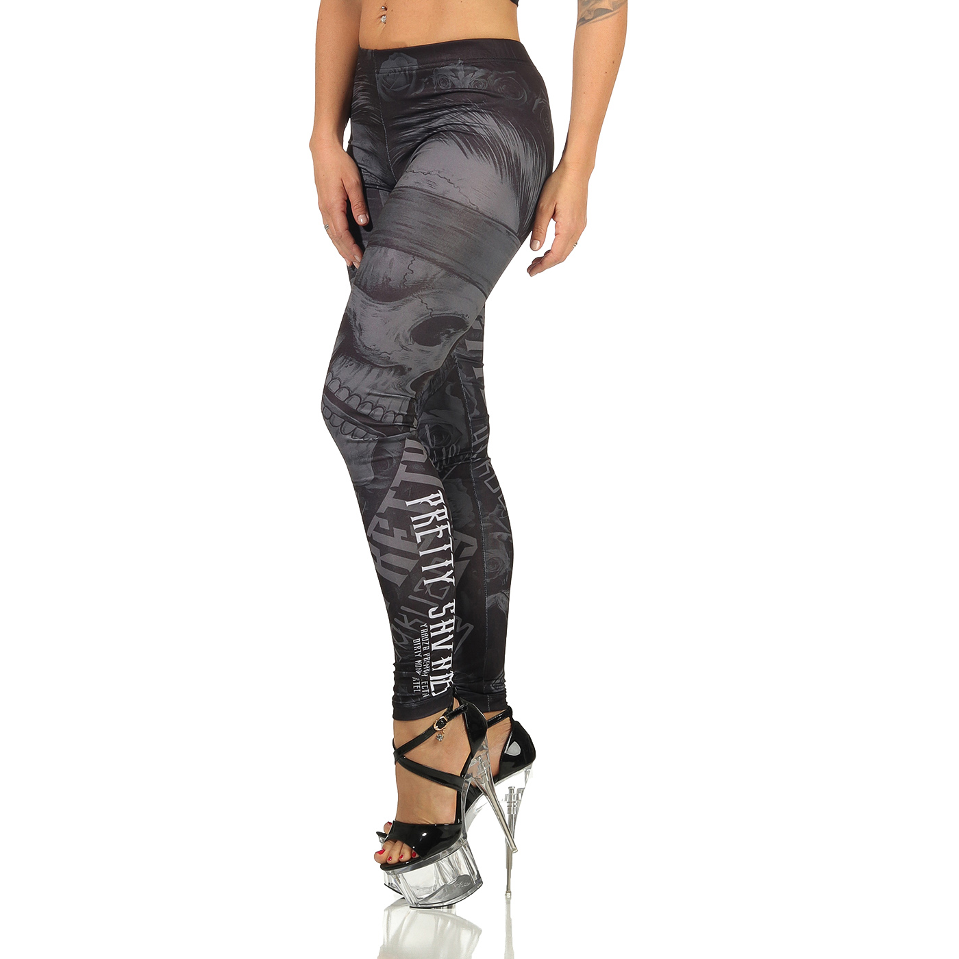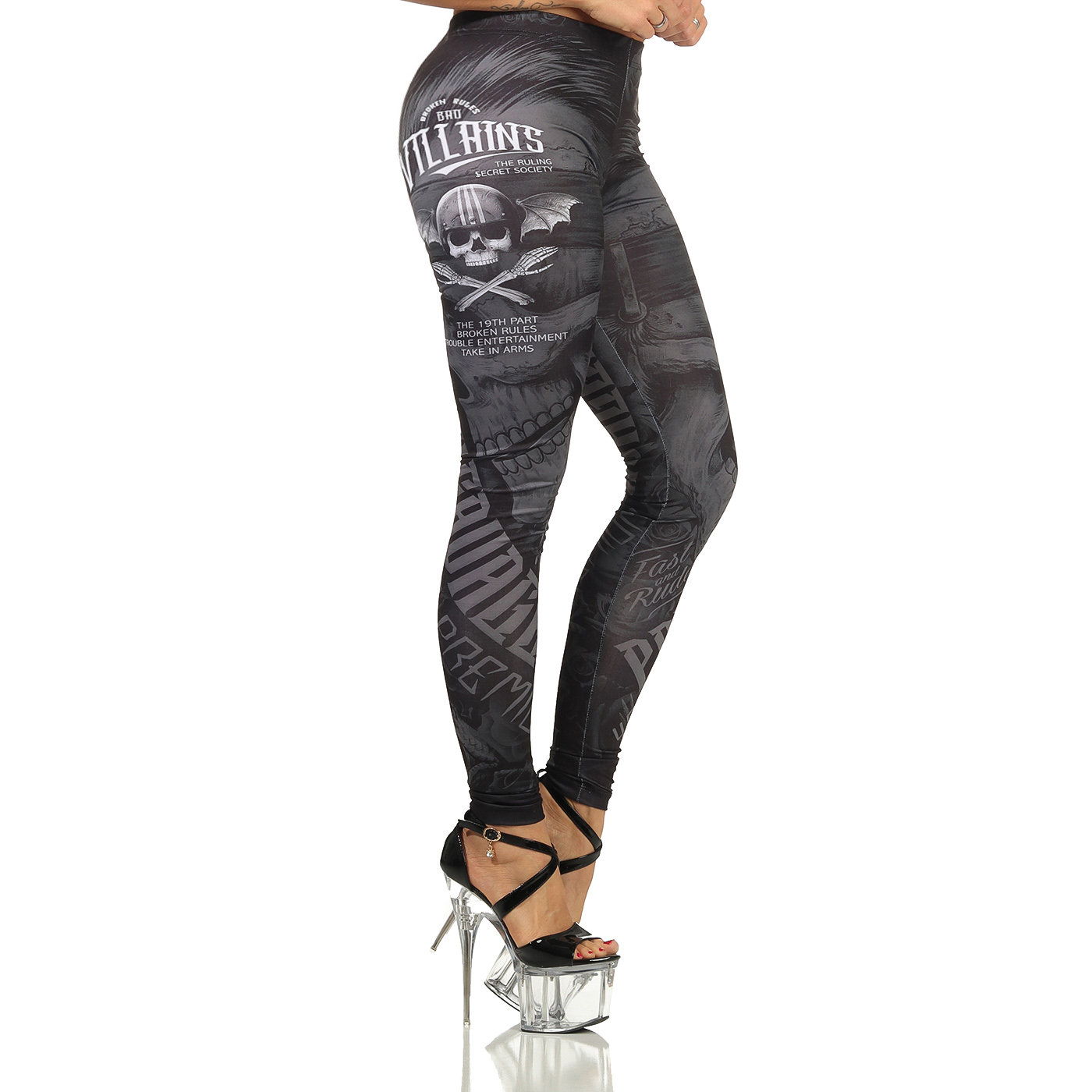 Legíny Yakuza Premium 3165. Mají velké potisky s lebkou. Legíny jsou ušité pouze s jedním vnitřním švem, takže se velmi pohodlně nosí. Manžety a látka jsou velmi elastické, takže pěkně obepínají pokožku.